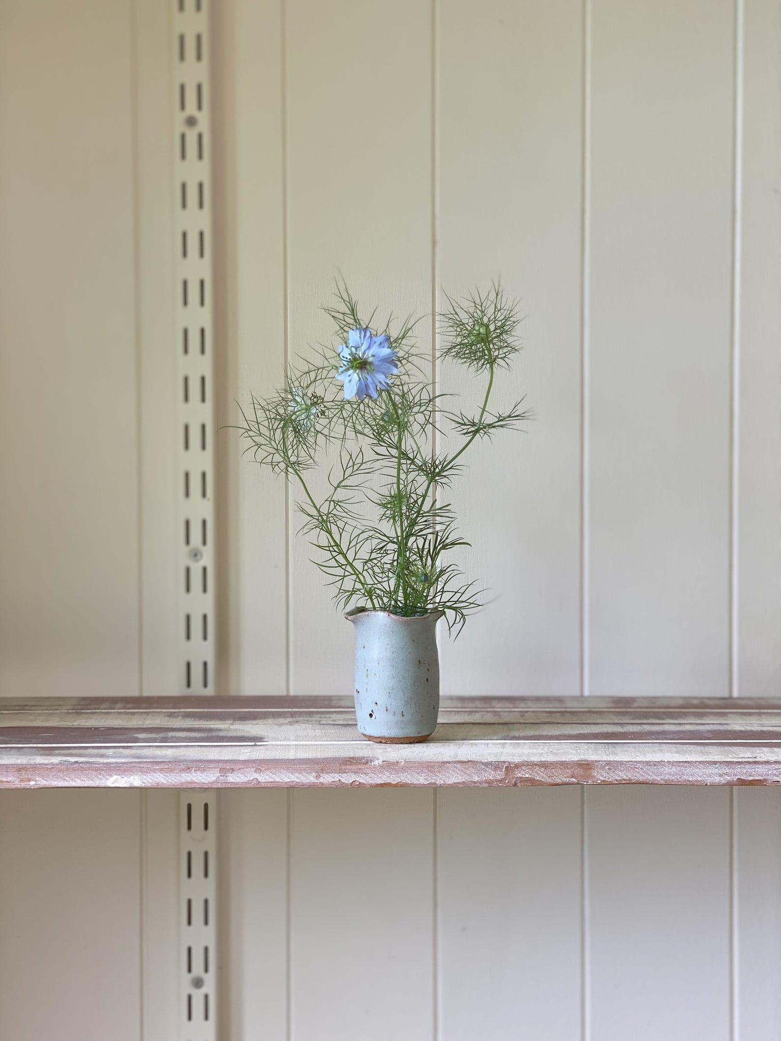 ruffle bud vase 649 - one of a kind - stoneware -sea blue - matte glaze with volcanic sand