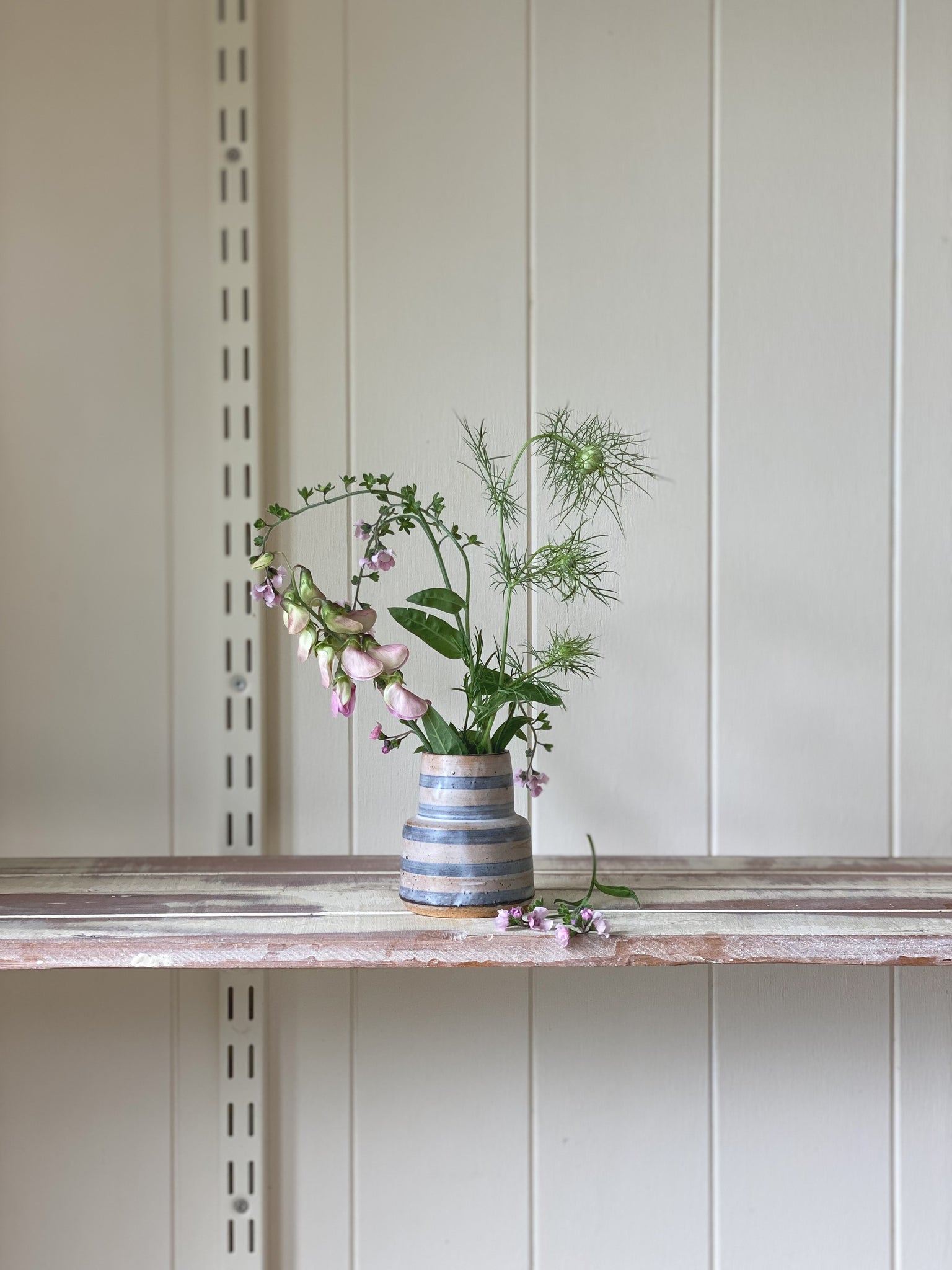bud vase 647 - one of a kind - stoneware - indigo stripe - matte glaze with volcanic sand